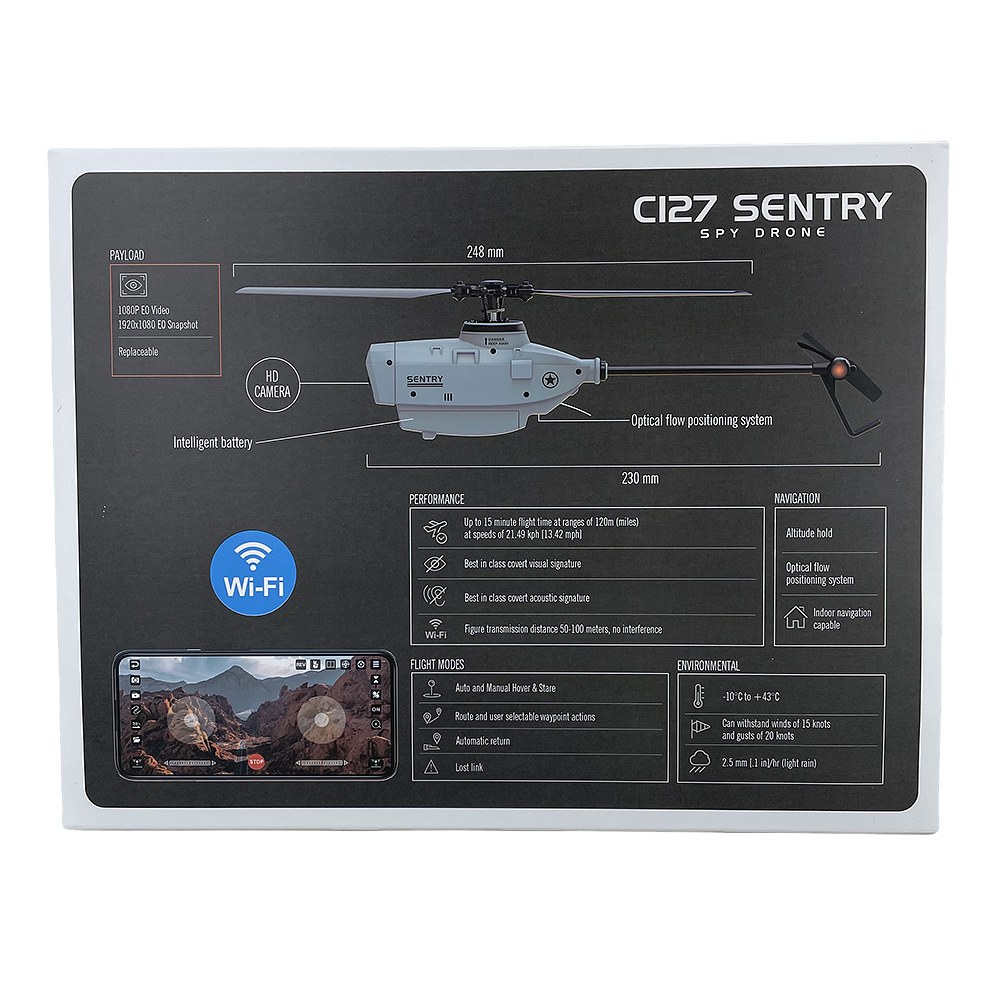 RC Helicopter C127 Sentry Spy Drone 2.4GHz 720P Wide Angle Camera 6 Axis Gyro Wifi 6G With Single Paddle Without Ailerons